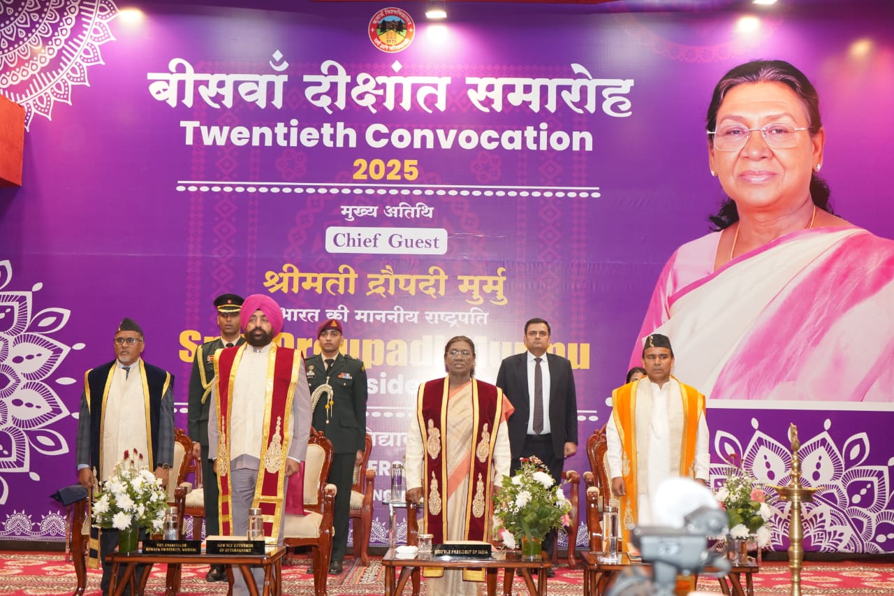 The President of India, Smt. Droupadi Murmu, graced the 20th Convocation Ceremony of Kumaun University, Nainital, as the Chief Guest. During the ceremony, the President conferred gold medals and degrees upon students for their outstanding academic achievements. Governor Lt. Gen. Gurmit Singh (Retd.) was also present on the occasion.