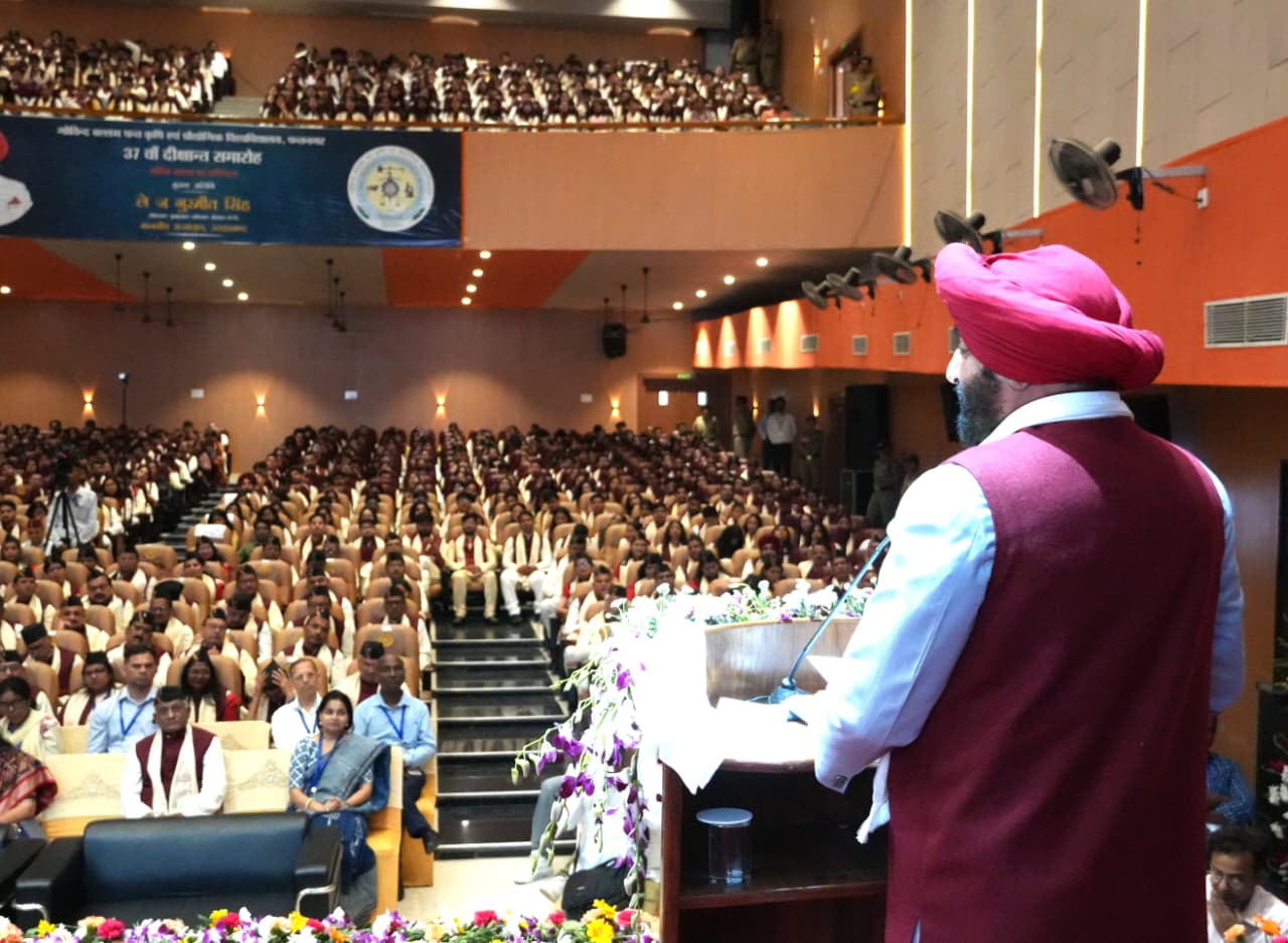 In his address, the Governor highlighted the significance of the 37th convocation, describing it as a symbol of fulfillment and higher purpose. Emphasizing the concept of a “New Era,” he encouraged students to contribute towards the vision of Viksit Bharat, Atmanirbhar Bharat, and India as a global leader. He noted that modern technologies such as artificial intelligence, quantum computing, robotics, cyber technology, and space science are rapidly transforming the world, making the role of youth increasingly crucial.
