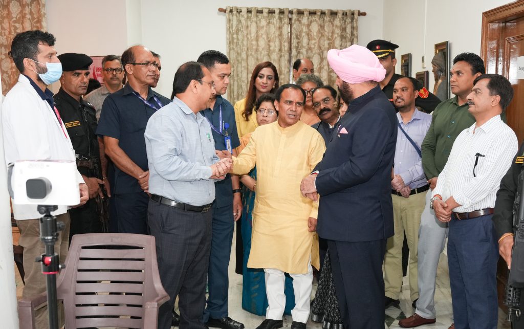 Governor inspecting the health camp organised under the campaign “Swasth Nari, Sashakt Parivar” at Raj Bhawan.