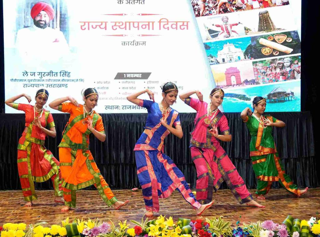 Artists present captivating performances of various cultural programmes on the Foundation Day programme of various states and union territories at Raj Bhawan.