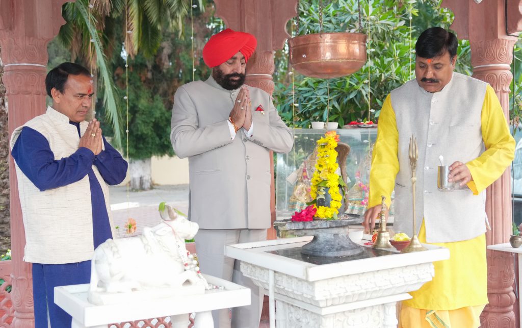 Cabinet Minister Dr. Dhan Singh Rawat along with the Governor performing puja at Rajprajneshwar Mahadev Temple located in Lok Bhavan on the auspicious occasion of Mahashivratri.