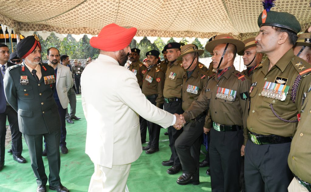 The Governor interacting with military officers and soldiers at Shaurya Sthal, Dehradun, on the occasion of Vijay Diwas.