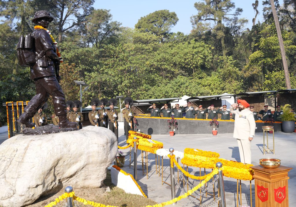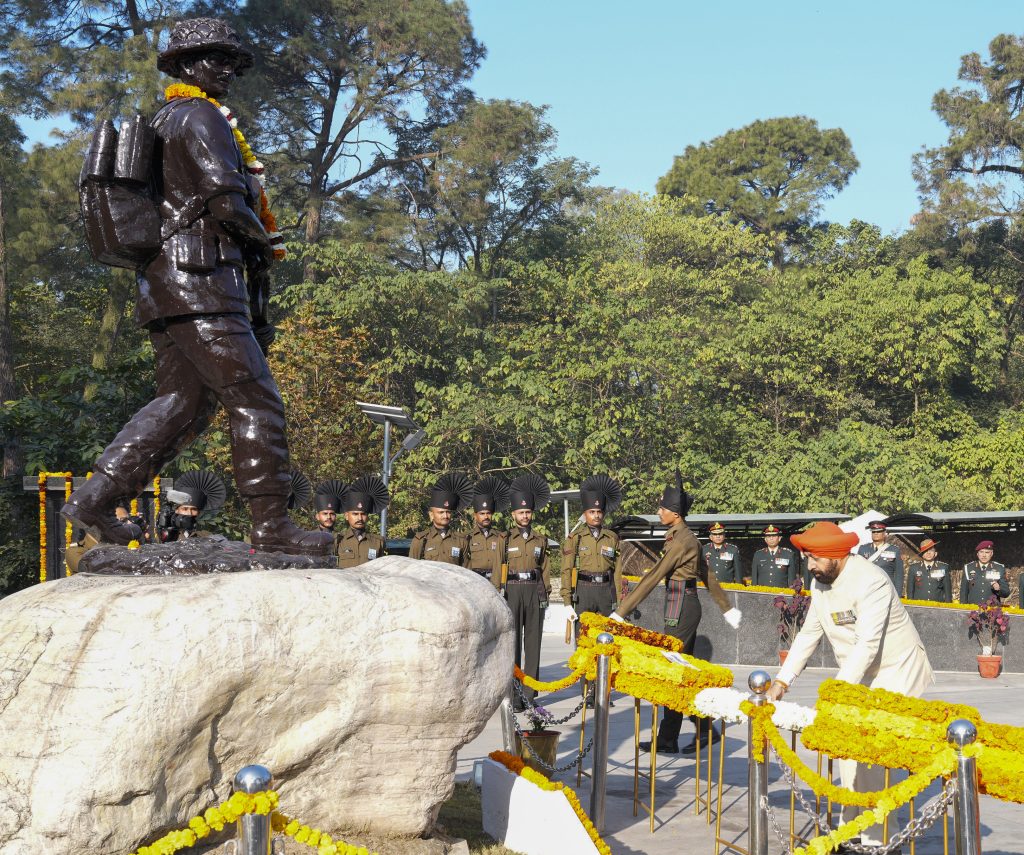 The Governor paying tribute to the brave martyrs by laying a wreath at Shaurya Sthal, Dehradun, on the occasion of Vijay Diwas.