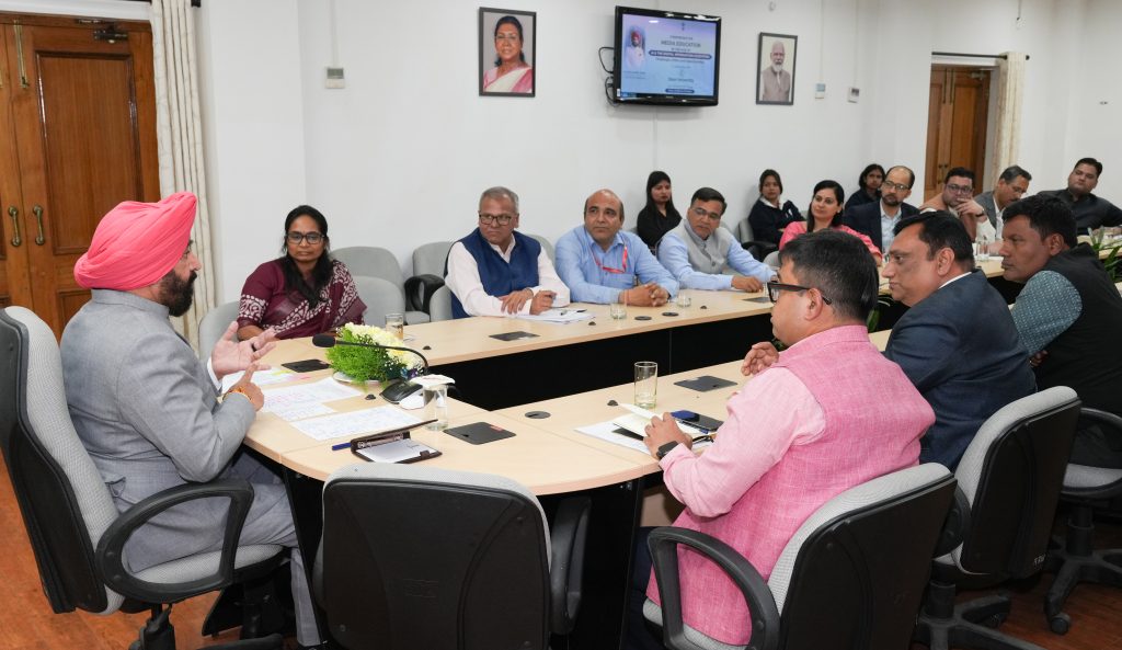 The Governor presiding over a meeting with Heads of Departments and Deans of Media and Mass Communication departments from various universities across the state at Lok Bhavan.