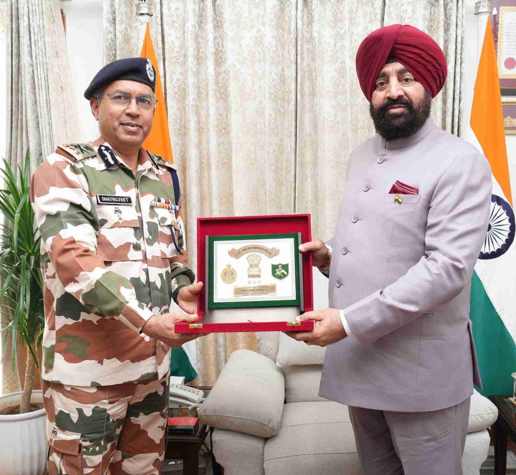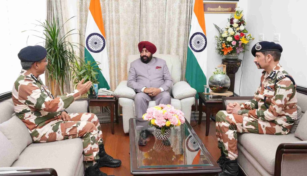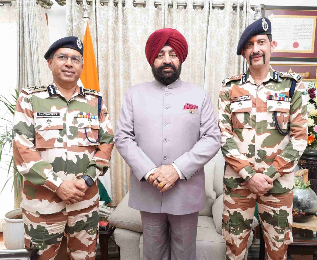 ITBP Director General Shri Shatrujeet Kapoor and IG Shri Manu Maharaj paying a courtesy call on the Governor.