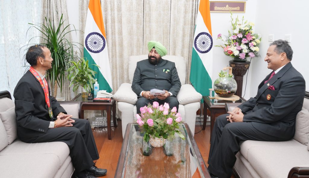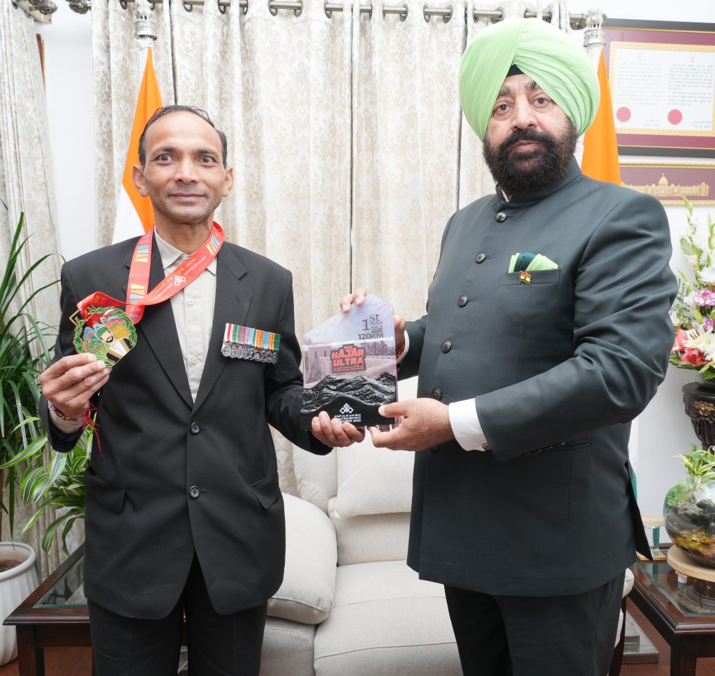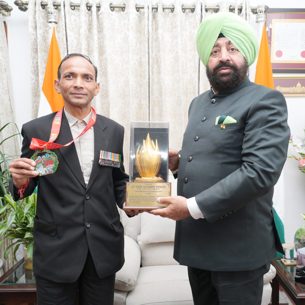 24-12-2025 : Ex serviceman Kalim Singh Bisht, winner of the International Trail Running Competition, paying a courtesy call on the Governor.