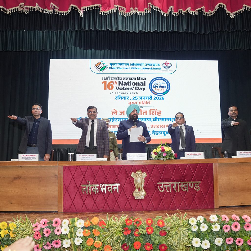 25-01-2026 : The Governor taking a selfie at the selfie point during the state-level National Voters’ Day program held at Lok Bhavan on the occasion of the 16th National Voters’ Day.