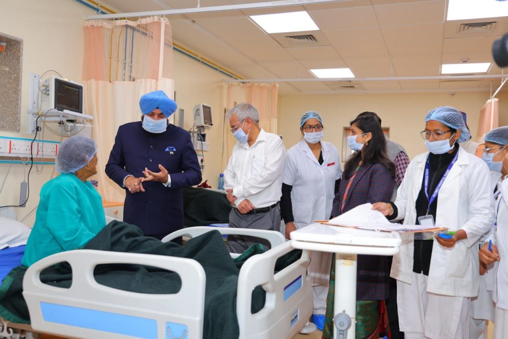 The Governor inspecting the District Hospital and interacting with patients and their attendants to gather information during his two-day visit to Pauri District.