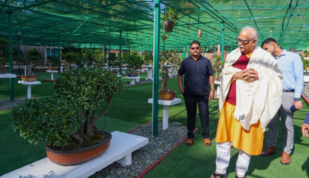 Governor of Goa, Shri P. Ashok Gajapathi Raju, visiting the Bonsai Garden at Raj Bhawan.