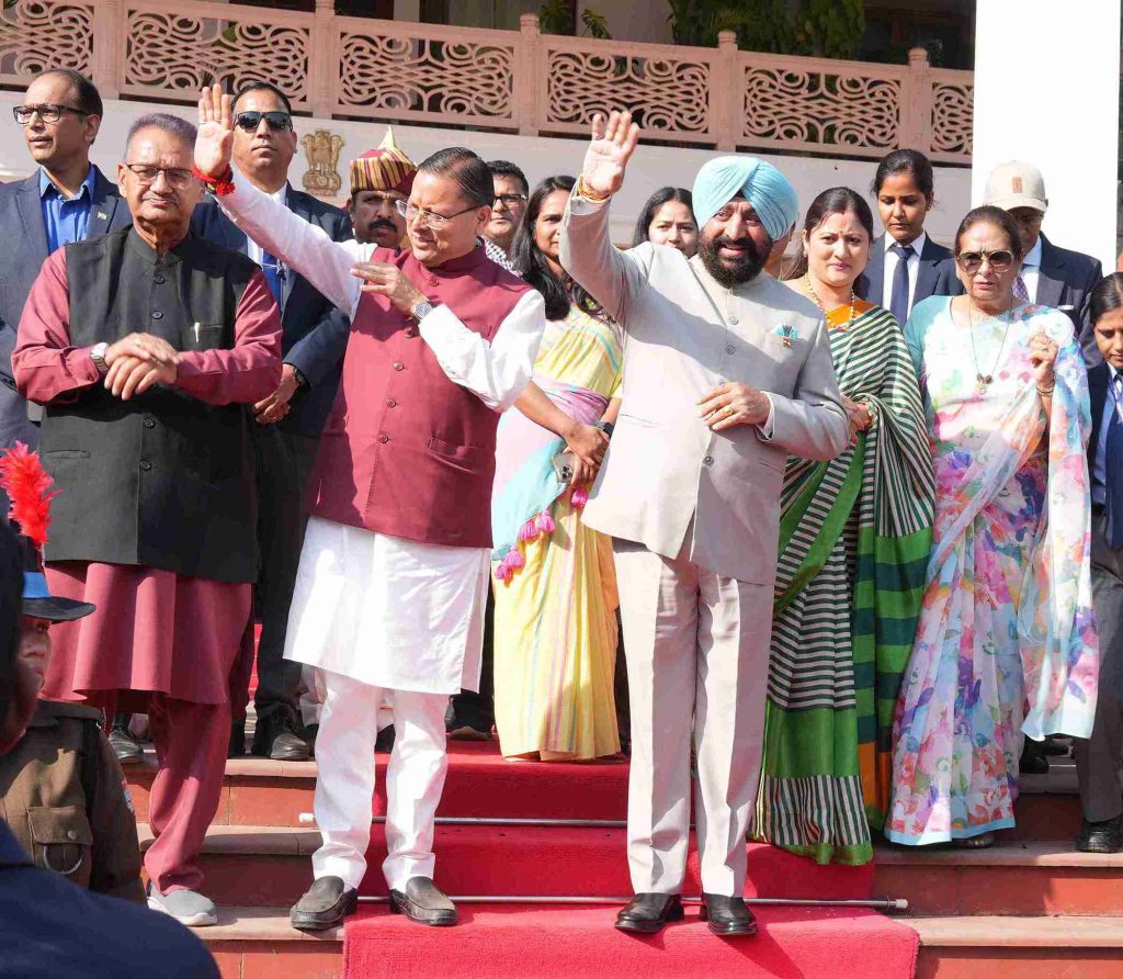 लोक भवन देहरादून में तीन दिवसीय वसंतोत्सव के समापन अवसर पर जनता का अभिवादन स्वीकार करते हुए राज्यपाल एवं मुख्यमंत्री।