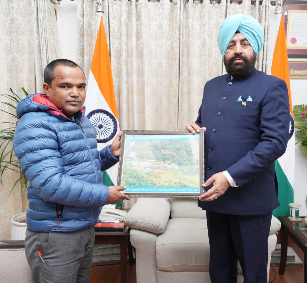 03-02-2026 : राज्यपाल से शिष्टाचार भेंट करते हुए ग्राम ल्वाणी, विकासखंड देवाल, जिला चमोली के मत्स्य पालन उद्यमी श्री मोहन सिंह बिष्ट।