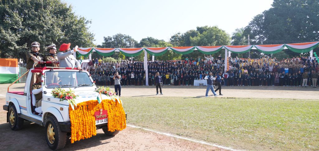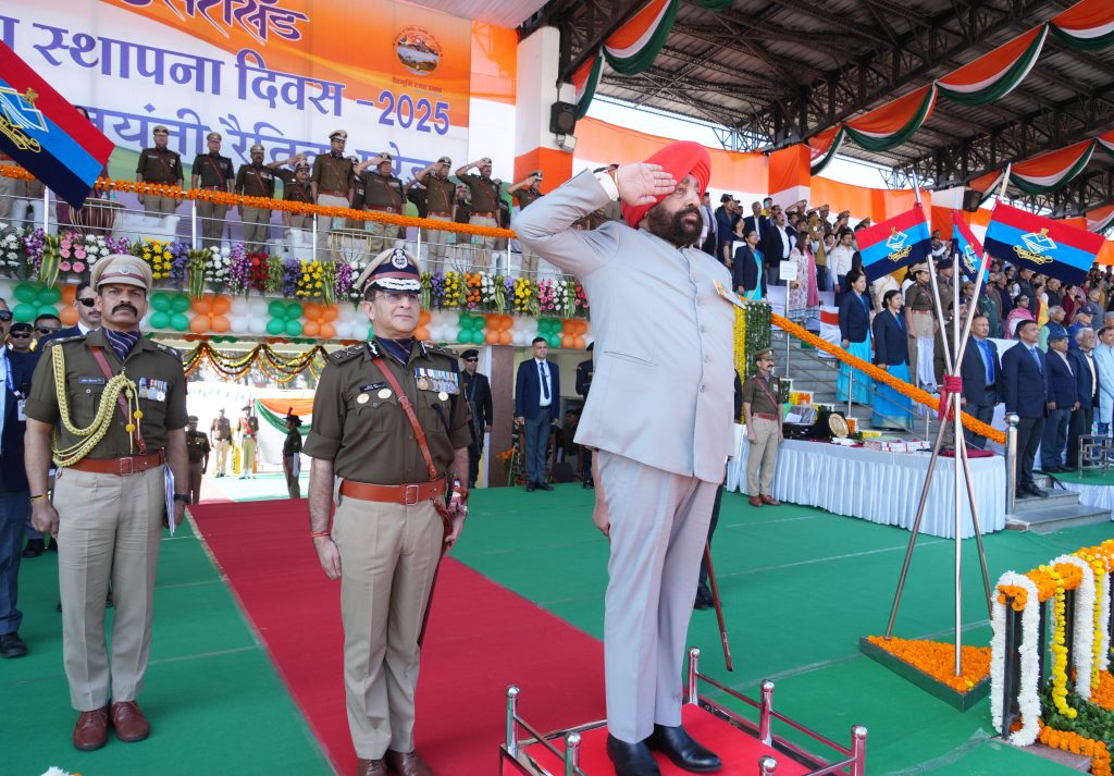 07-11-2025 : राज्य स्थापना के रजत जयंती समारोह में रैतिक परेड की सलामी लेते हुए राज्यपाल।