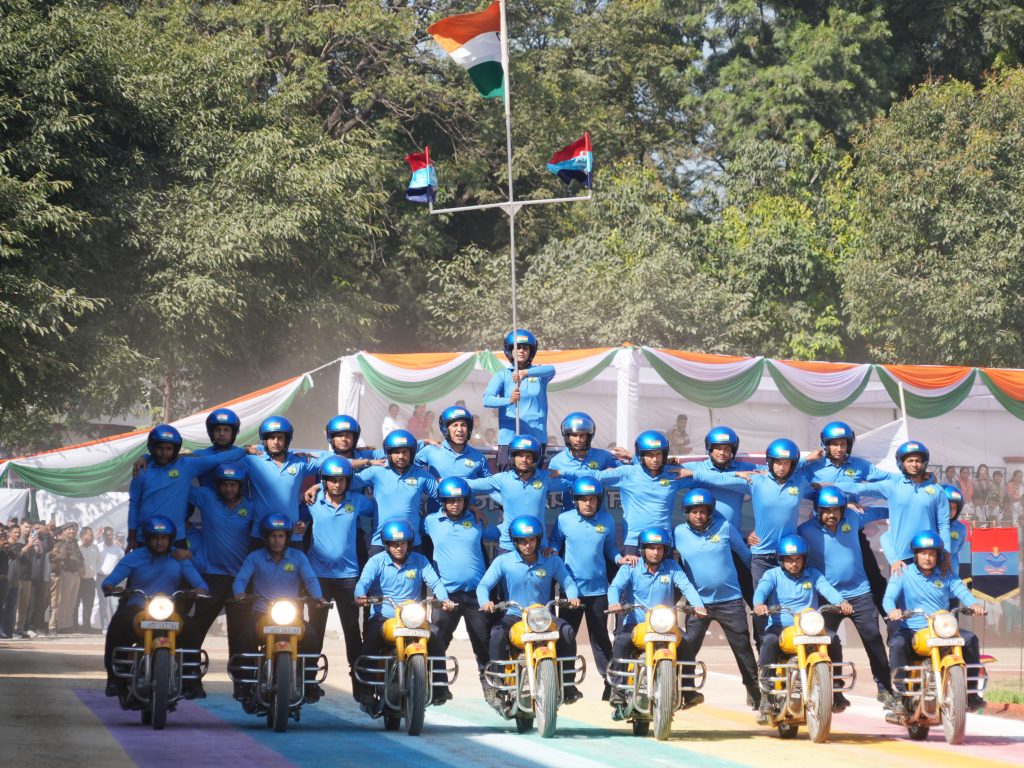 राज्य स्थापना के रजत जयंती समारोह में रैतिक परेड का उत्कृष्ट प्रदर्शन दिखाते हुए उत्तराखण्ड पुलिस के मोटरसाइकिल दल।