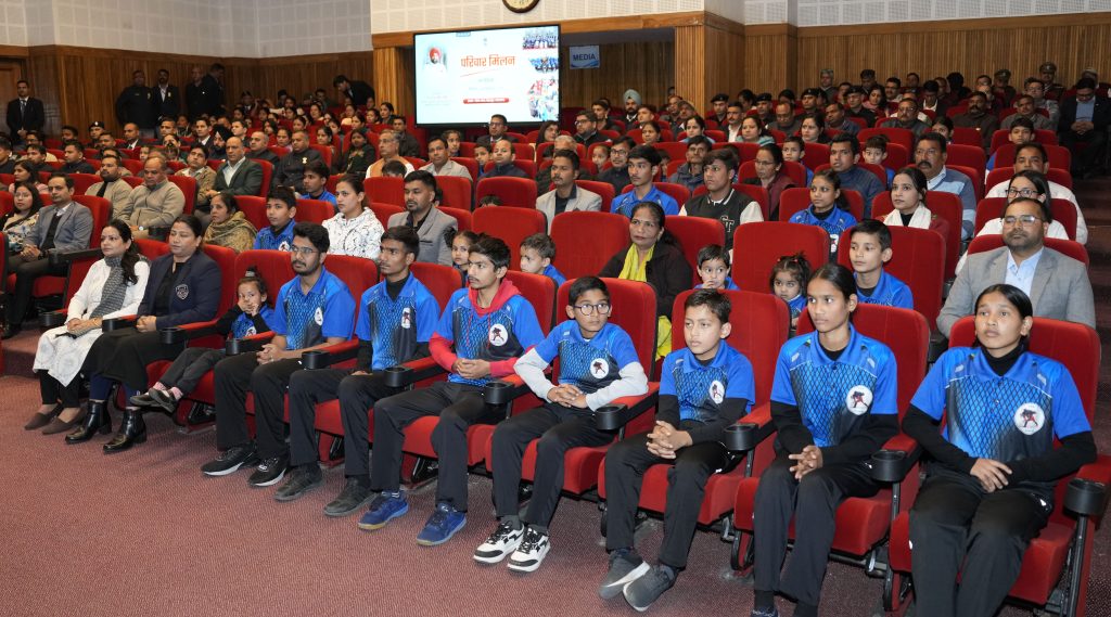 लोक भवन में आयोजित “परिवार मिलन समारोह” में प्रतिभाग करते हुए वुशु प्रशिक्षण एवं कंप्यूटर प्रशिक्षण के छात्र-छात्राएं।