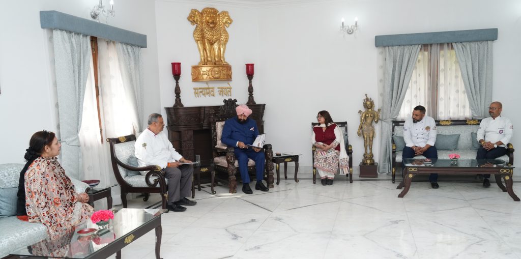 लोक भवन में “फ्लेवर ऑफ देवभूमि” पुस्तक विमोचन के अवसर पर इंडियन फेडरेशन ऑफ कुलिनरी एसोसिएशन के सदस्यों से वार्ता करते हुए राज्यपाल।