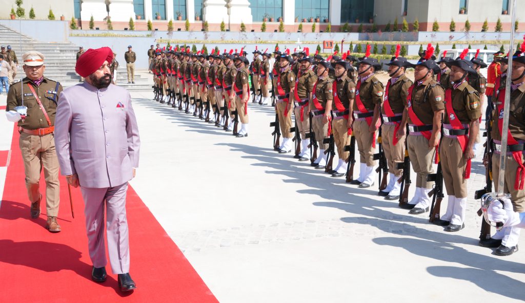 09-03-2026 : भराड़ीसैंण (गैरसैंण) में आयोजित विधानसभा के बजट सत्र के अवसर पर पुलिस जवानों की परेड का निरीक्षण करते हुए राज्यपाल।