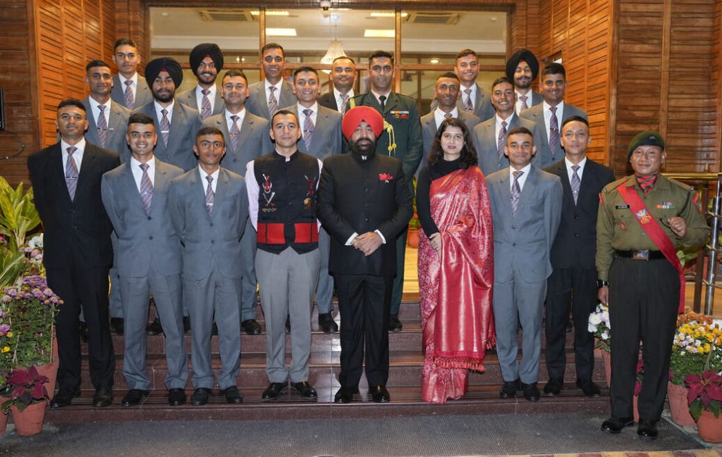 लोक भवन में इंडियन मिलिट्री अकादमी (आईएमए) से पास आउट हो रहे 18 ऑफिसर कैडेट्स के साथ राज्यपाल।