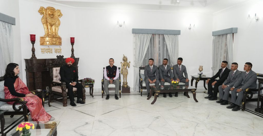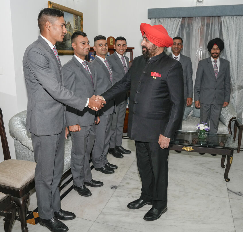 राज्यपाल से लोक भवन में शिष्टाचार भेंट करते हुए इंडियन मिलिट्री अकादमी (आईएमए) से पास आउट हो रहे 18 ऑफिसर कैडेट्स।