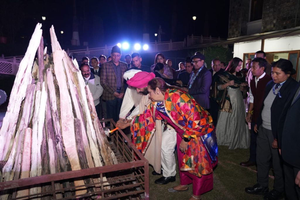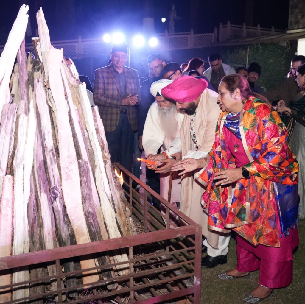 लोक भवन में लोहड़ी पर्व पारंपरिक उल्लास के साथ मनाते हुए राज्यपाल, प्रथम महिला श्रीमती गुरमीत कौर एवं उपस्थित गणमान्य लोग।