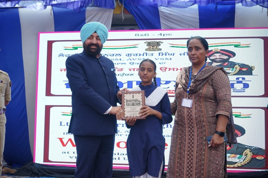 गवर्नमेंट सीनियर सेकेंडरी स्कूल, जलाल उस्मान, अमृतसर में मेधावी छात्रा को प्रशस्ति पत्र से सम्मानित करते हुए राज्यपाल।