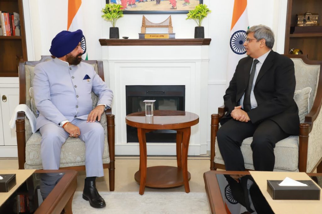 राज्यपाल से शिष्टाचार भेंट करते हुए संयुक्त सचिव, रक्षा मंत्रालय श्री मयंक तिवारी।