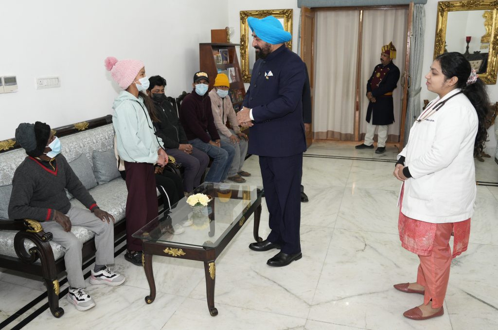 20-12-2025 : लोक भवन में आयोजित कार्यक्रम के दौरान राष्ट्रीय क्षय उन्मूलन कार्यक्रम तहत गोद लिए गए टीबी रोगियों से वार्ता करते हुए राज्यपाल।