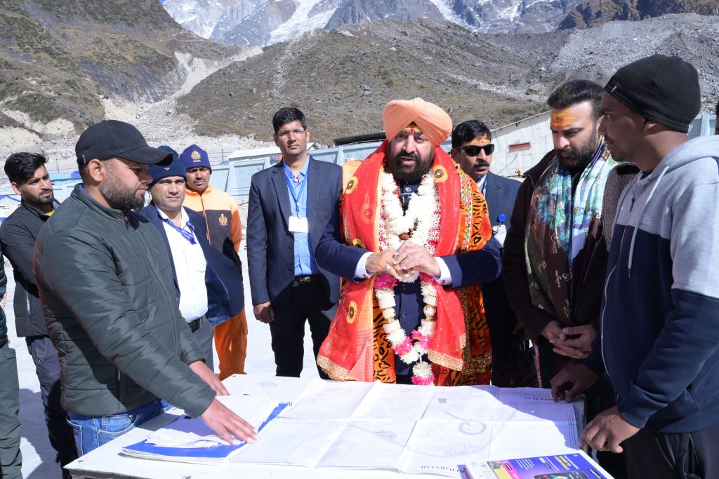 केदारनाथ धाम में चल रहे पुनर्निर्माण एवं विकास कार्यों का स्थलीय निरीक्षण कर जानकारी प्राप्त करते हुए राज्यपाल।