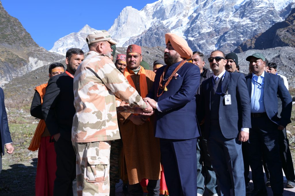 21-10-2025 : केदारनाथ धाम भ्रमण के दौरान सेना के जवानों से मुलाकात करते हुए राज्यपाल।