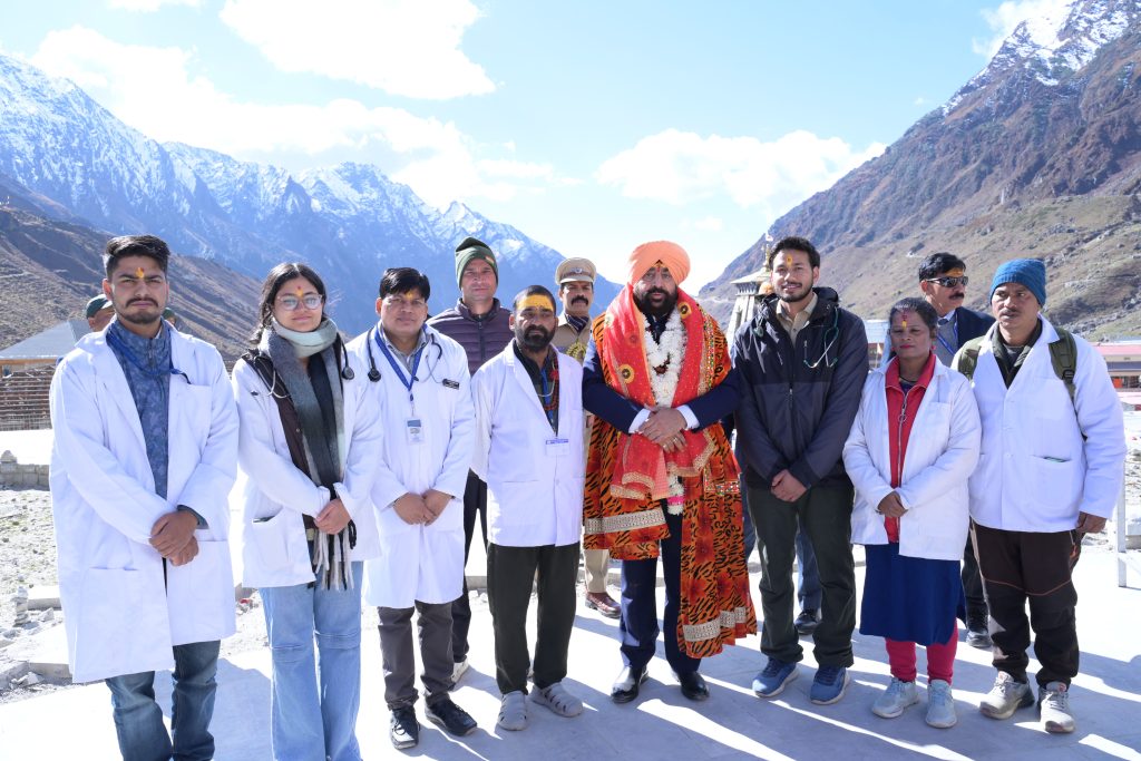श्री केदारनाथ धाम में चिकित्सा स्वास्थ्य कर्मियों से मुलाकात करते हुए राज्यपाल।