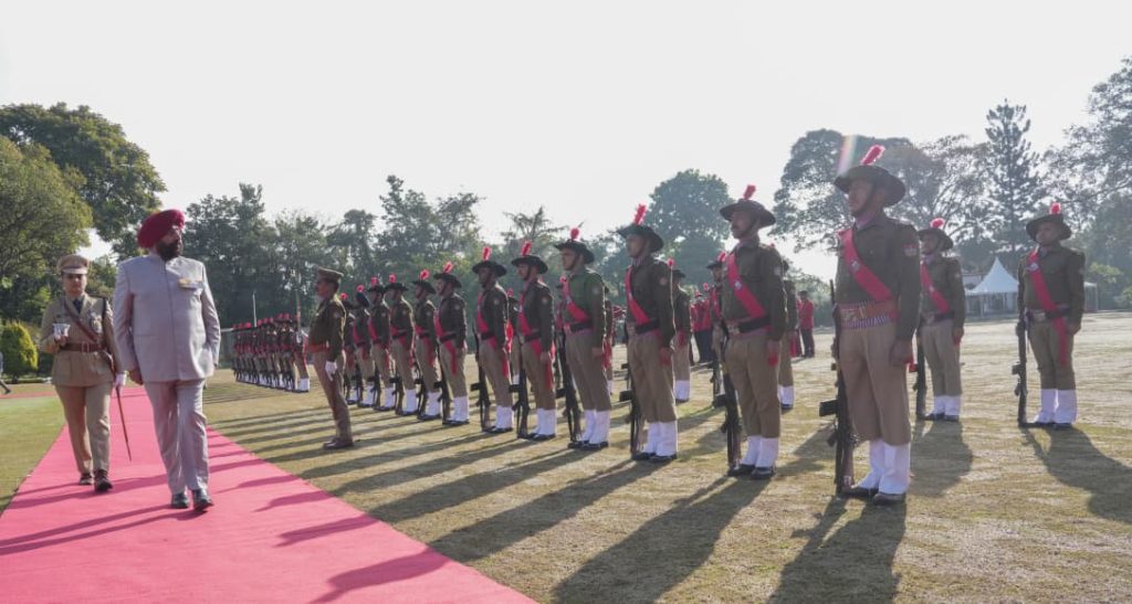 गणतंत्र दिवस के अवसर पर लोक भवन में परेड का निरीक्षण करते हुए राज्यपाल।