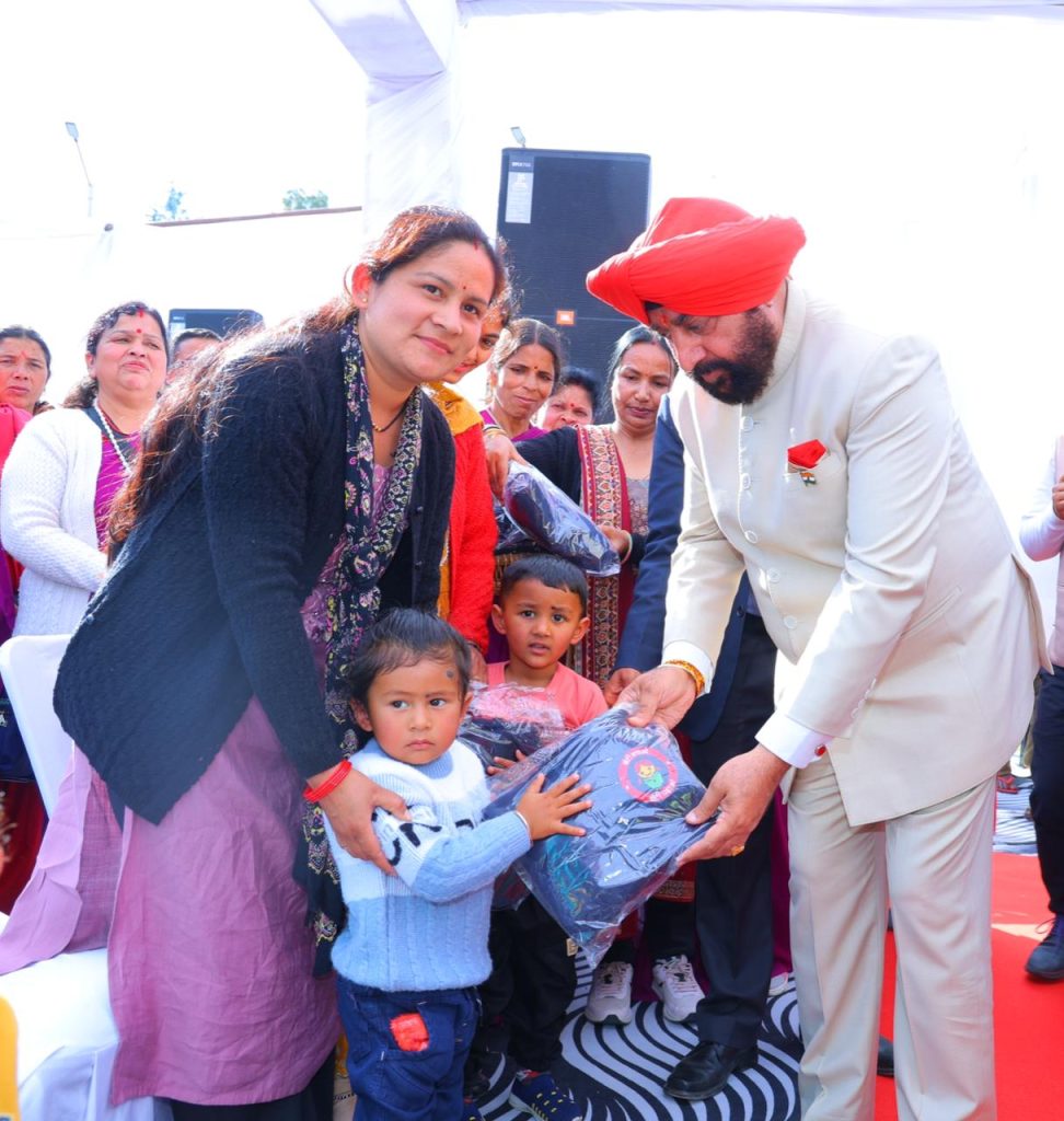सर्किट हाउस, पौड़ी में आंगनबाड़ी के बच्चों को ट्रैकसूट वितरित करते हुए राज्यपाल।