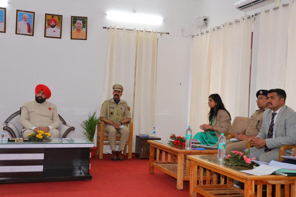 सर्किट हाउस, पौड़ी में जिला प्रशासन के अधिकारियों के साथ जनपद के विकास कार्यों की समीक्षा बैठक करते हुए राज्यपाल।