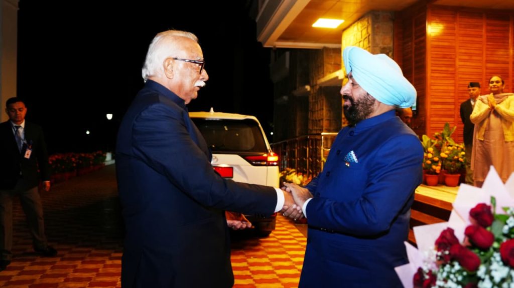 राज्यपाल लेफ्टिनेंट जनरल गुरमीत सिंह (से नि) से शिष्टाचार भेंट करते हुए गोवा के राज्यपाल श्री पी. अशोक गजपति राजू।