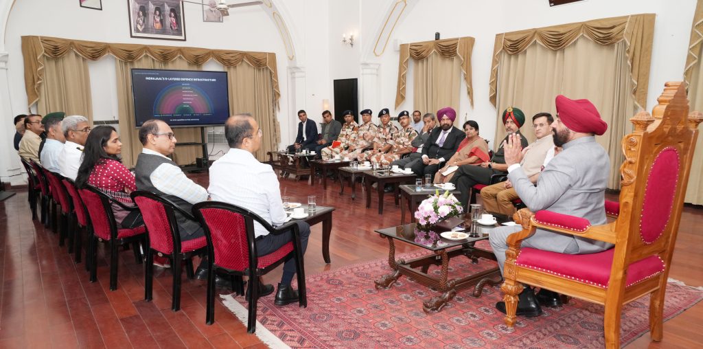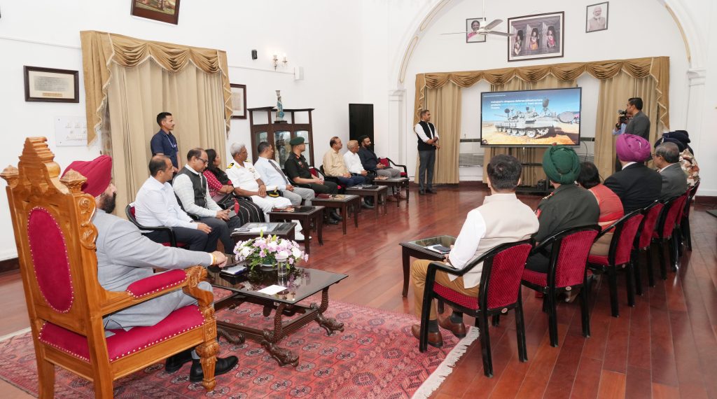 राज्यपाल के समक्ष अत्याधुनिक काउंटर ड्रोन तकनीक का विस्तृत प्रस्तुतिकरण देते हुए विशेषज्ञ।