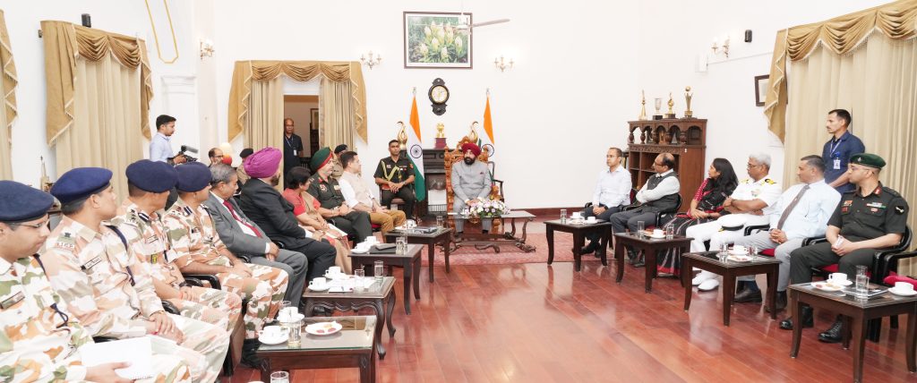 अत्याधुनिक काउंटर ड्रोन तकनीक के प्रस्तुतिकरण अवसर पर विशेषज्ञों के साथ राज्यपाल।